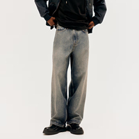 Pantalones vaqueros lavados vintage informales para hombre al por mayor, pantalones vaqueros transpirables de cintura media de estilo recto amarillo y azul