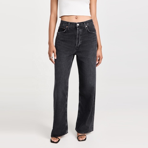 Vaqueros de mujer de pierna ancha de corte holgado de tiro bajo con logotipo personalizado OEM