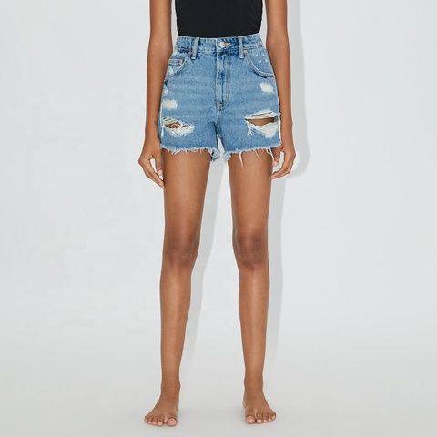 Precio de fábrica Pantalones cortos de mezclilla de calidad superior Última moda Desgastado Cintura alta Suelto Recto Casual Lavado Técnicas Verano
